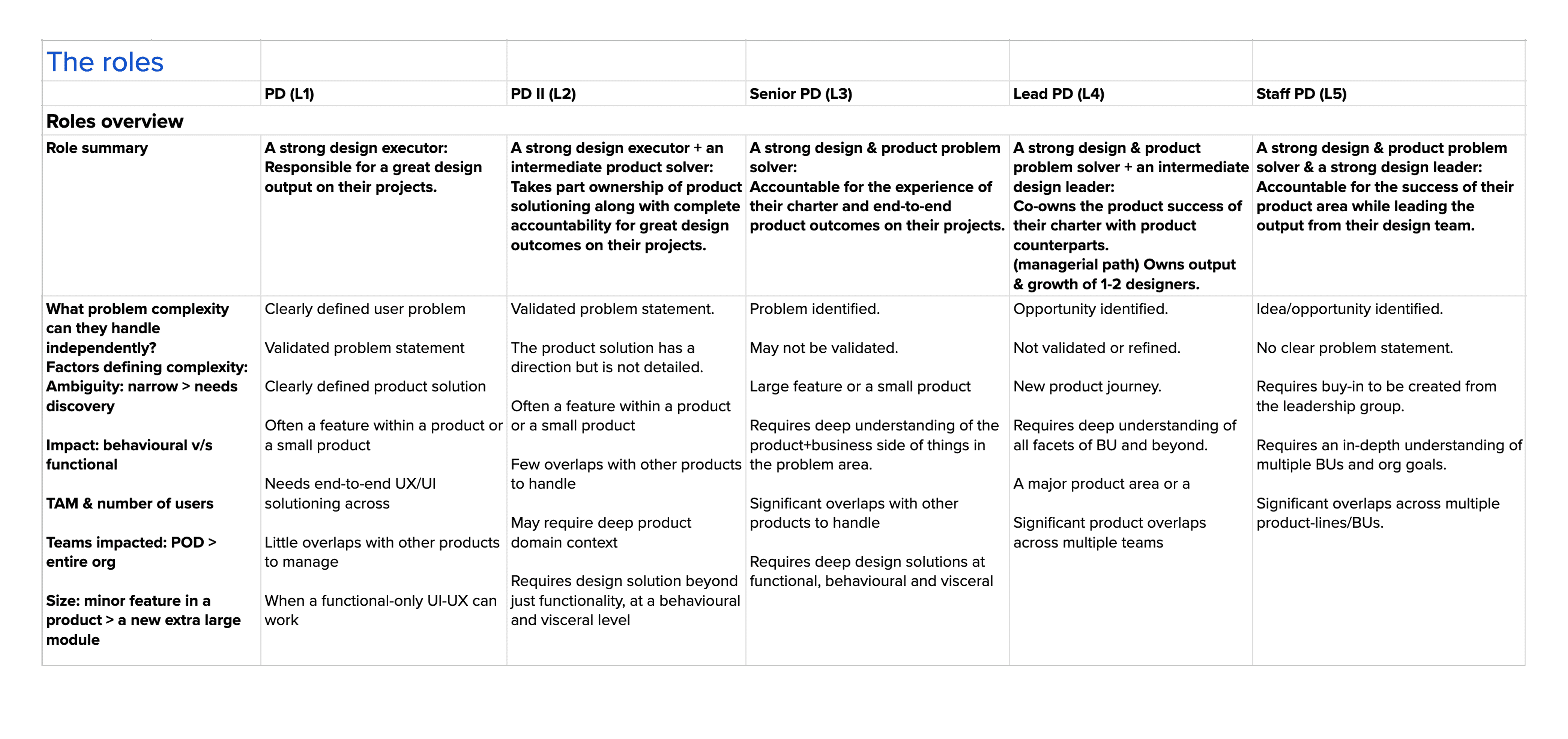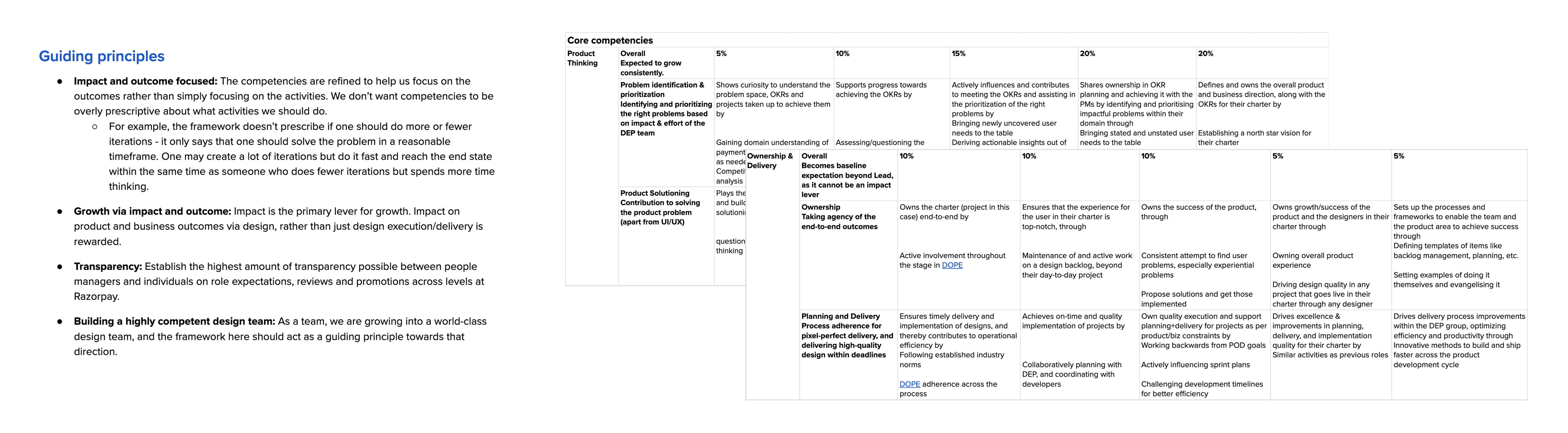 Next, I took up the huge task of coming up with a Product Design Competency Framework that we can apply across the org for all designers with clear expectations on impact and outcomes to keep everyone driven.