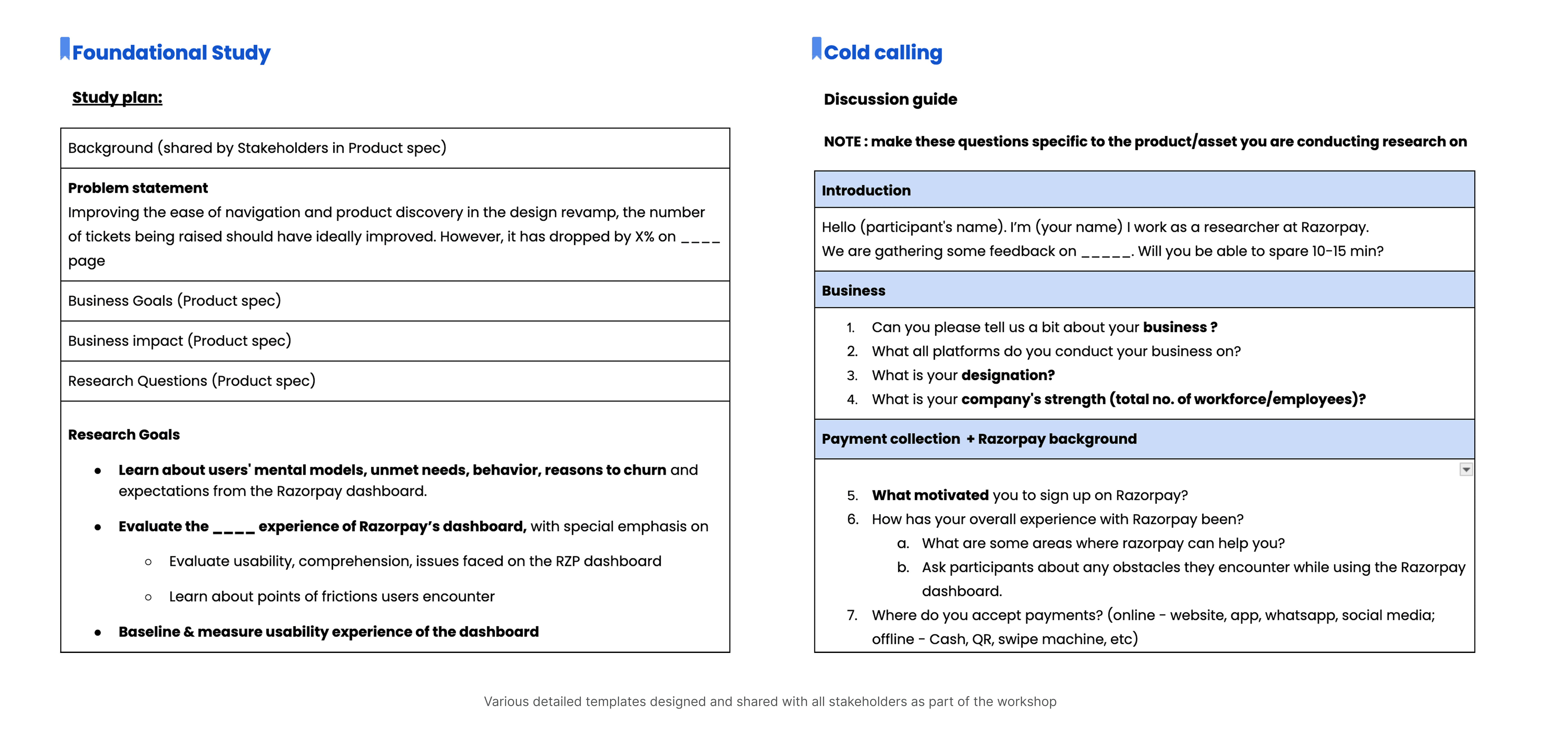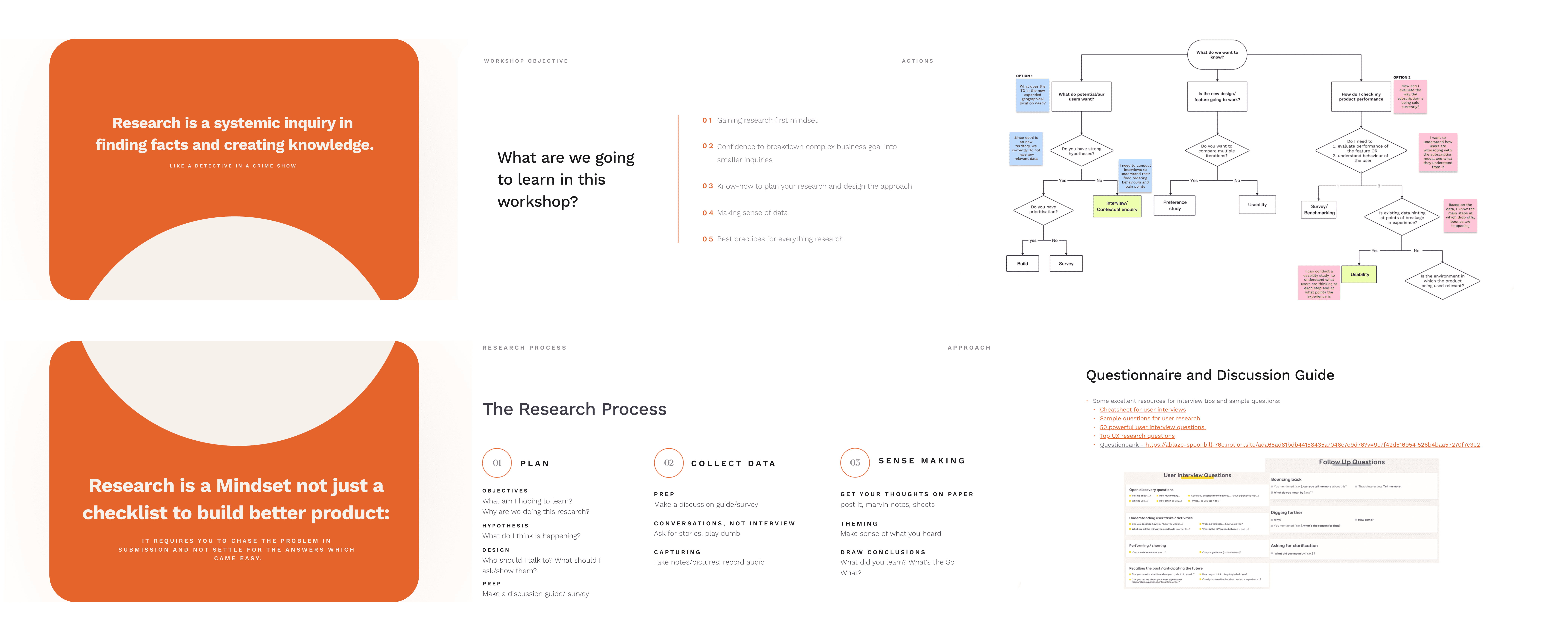 I set up a plan with the Research team to conduct an org-wide Workshop, in batches, to educate cross-functional peers on why we need to do more research, for what kind of projects, the process of some common types of research studies and timelines and outcome expectations from them. Together we set up a few templates and guidelines to get each team started on conducting their own research.